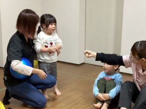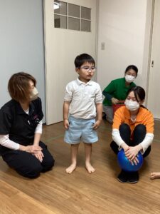 午前クラスから午後クラスに移行するお友だちもいるため、他利用児と関わってコミュニケーション能力を高めることをねらいとして自己紹介を行いました。